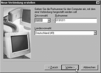 Nachdem das Modem (bzw. die ISDN-Karte) und das DFÜ-Netzwerk installiert sind, muss jetzt der Zugang im DFÜ-Netzwerk eingerichtet werden: