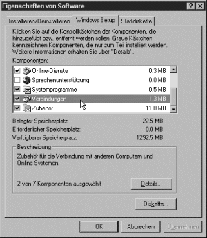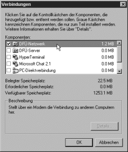Unter Windows 98 ist das DFÜ-Netzwerk im Normalfall schon installiert. Wenn nicht, dann kann das wie folgt nachgeholt werden: